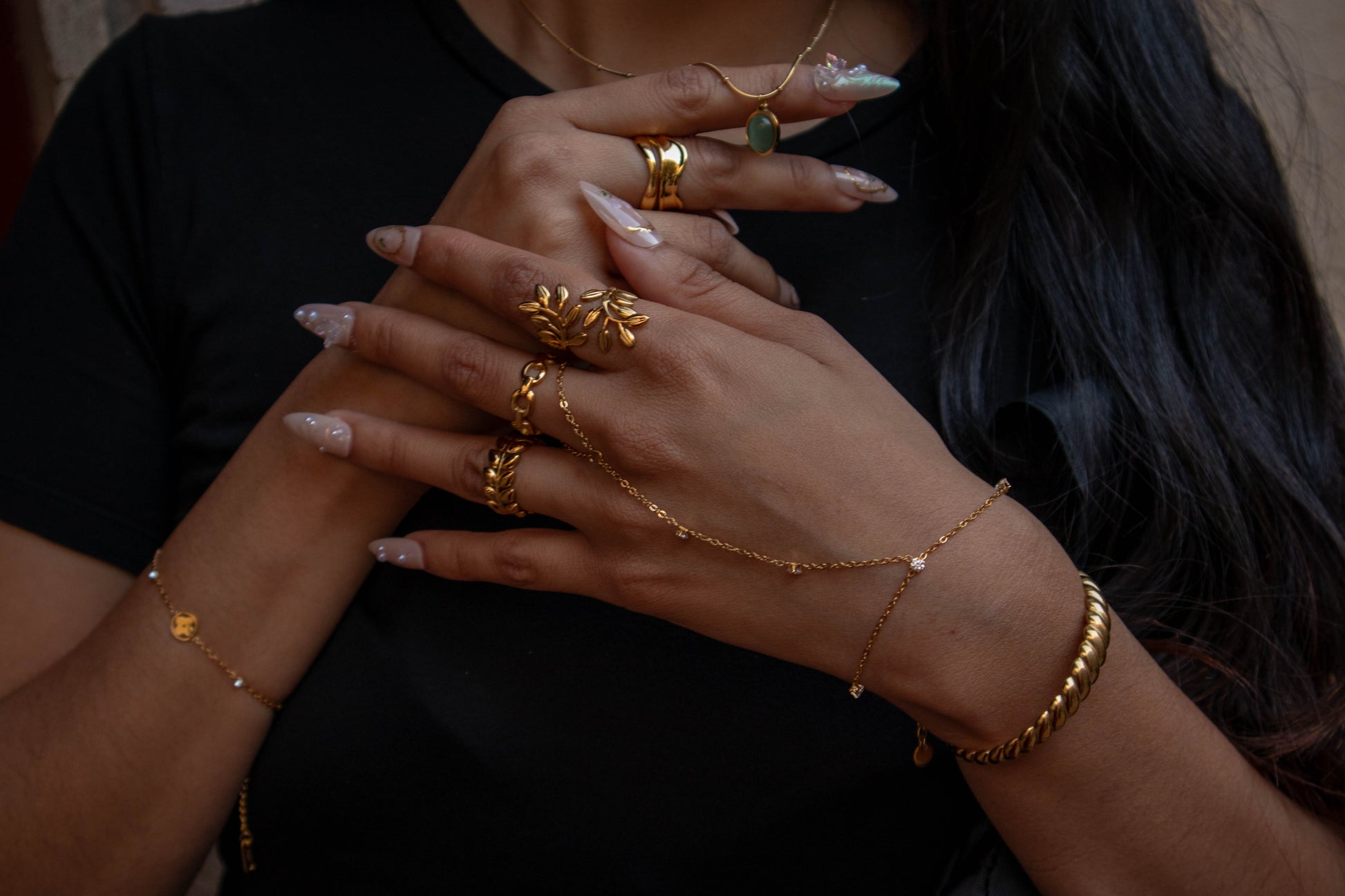Make a statement with the Chained Ring, crafted from gold-plated stainless steel perfect for an every day look. This beautiful, eye-catching piece is designed to add elegance to your everyday look or a fancy outfit.